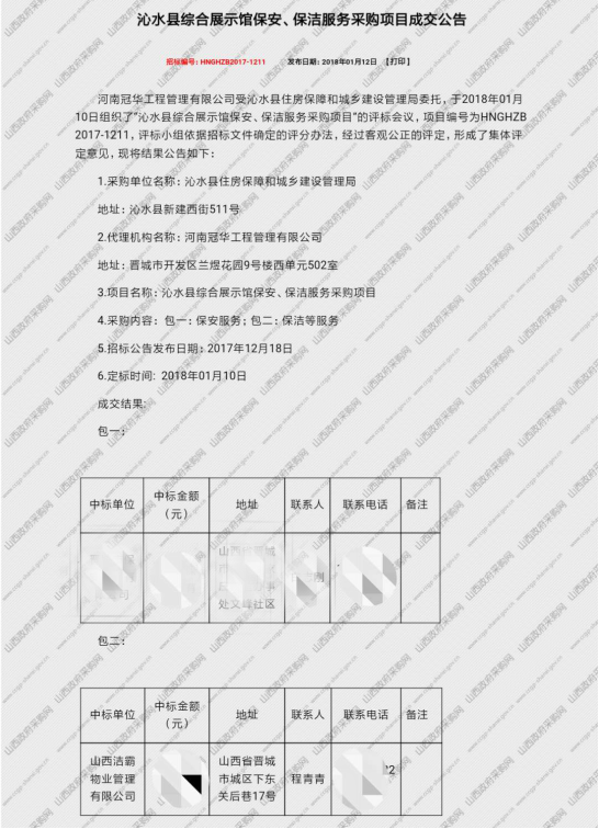 2)沁水縣綜合展示館保安、保潔服務(wù)采購項(xiàng)目成交公告
