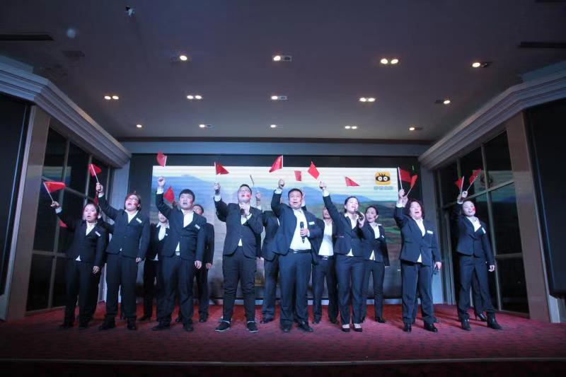 晚會最后,潔霸公司總經(jīng)理程晉軍和各單位、部門負責(zé)人共同唱響“大中國”。