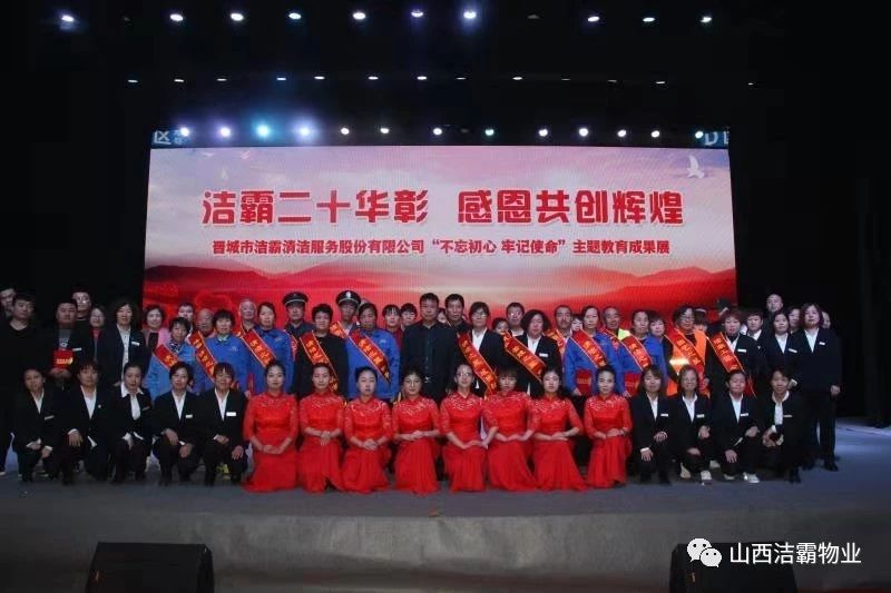 本次晚會(huì)以“潔霸二十華彰,感恩共創(chuàng)輝煌”為主題,此次慶典的核心思想是“感恩”,主要角色是潔霸的創(chuàng)業(yè)者。為此,公司對(duì)入職潔霸的創(chuàng)業(yè)功勛和一線員工進(jìn)行了表彰獎(jiǎng)勵(lì)。本次晚會(huì)共設(shè)8個(gè)獎(jiǎng)項(xiàng),包括“潔霸先鋒”“奉獻(xiàn)之星”“管理之星”“潔霸管家”“潔霸工匠”“清潔之星”“潔霸衛(wèi)士”“園藝之星”等。他們是:李山虎、張永智、史志霞、陳福林、王紅軍、余艷青、劉二丑、成艷粉、楊改梅、王書(shū)玲、張國(guó)榮、耿竹青、張粉霞、宋秋苗、陳先梅、張晉平、張偉山、趙瑞軍、王廣平、郭志云。晉城市原副市長(zhǎng)成育廷、晉城市商務(wù)局原局長(zhǎng)王新善、晉城市非公和社會(huì)組織工委書(shū)記郎軍芳、晉城市婦聯(lián)三級(jí)調(diào)研員李蓮菊、晉城市總工會(huì)商貿(mào)輕紡煙草服務(wù)業(yè)工會(huì)主席張玉濤、晉城市城區(qū)財(cái)政局局長(zhǎng)翟明太等領(lǐng)導(dǎo)為他們頒獎(jiǎng)。