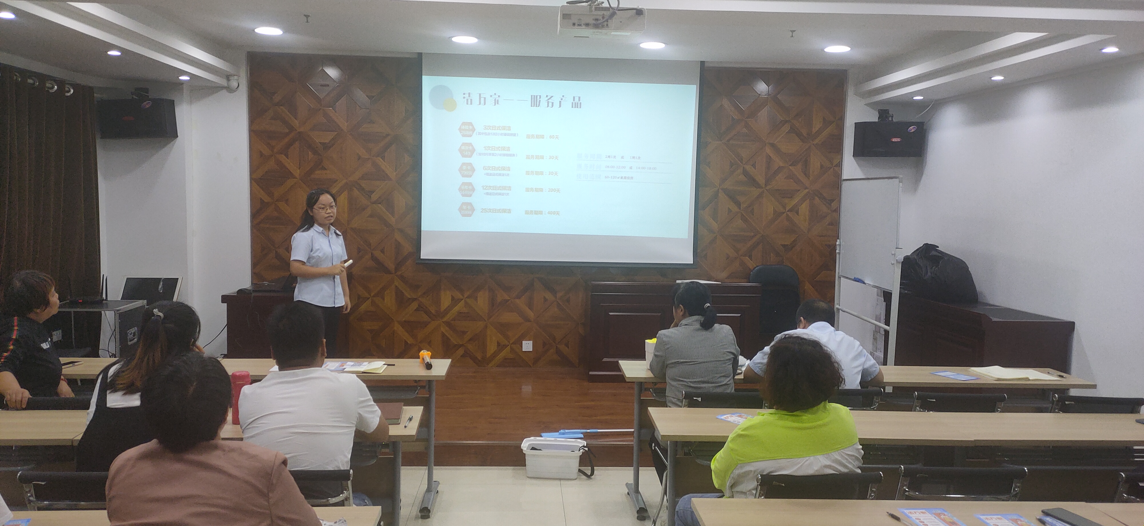 隨后由公司人力資源部負(fù)責(zé)人司夢(mèng)琴對(duì)“潔萬(wàn)家”日常保潔產(chǎn)品進(jìn)行了分類(lèi)介紹,此外還介紹了產(chǎn)品推廣獎(jiǎng)勵(lì)方案和推廣話術(shù),對(duì)大家日后推廣過(guò)程中會(huì)遇到的客戶提出的各種問(wèn)題進(jìn)行了預(yù)設(shè)并一一詳細(xì)作答。