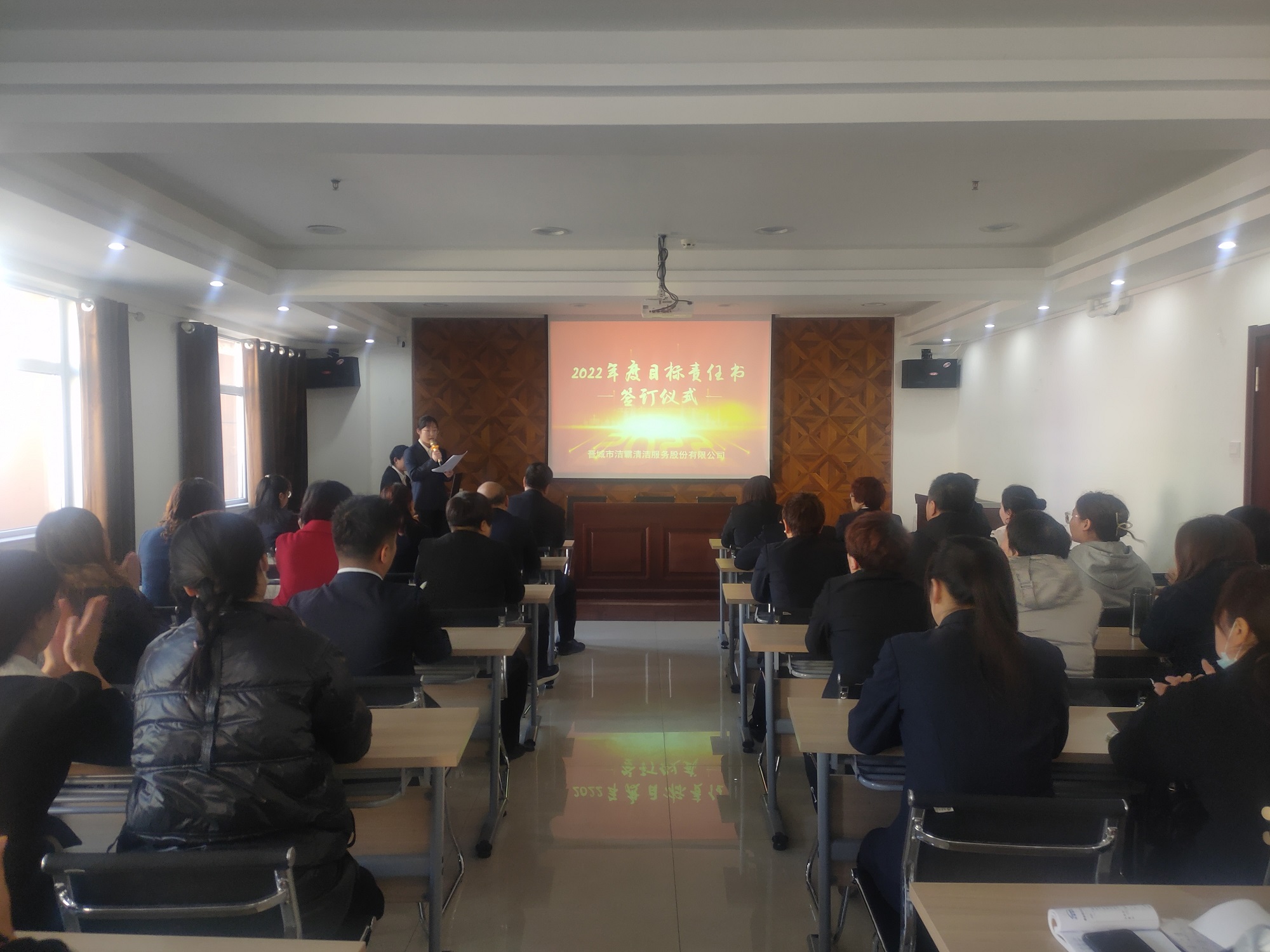 為落實公司2022年工作會議精神,進一步壓實責任,確保年度工作目標的順利完成, 3月1日下午,晉城市潔霸清潔服務股份有限公司在活動中心組織召開2022年度目標責任書簽訂會議。公司黨支部書記、總經(jīng)理程晉軍,副總經(jīng)理張永智、史志霞,經(jīng)理助理,各子公司、分公司、部門經(jīng)理及項目負責人、主管等參加會議。