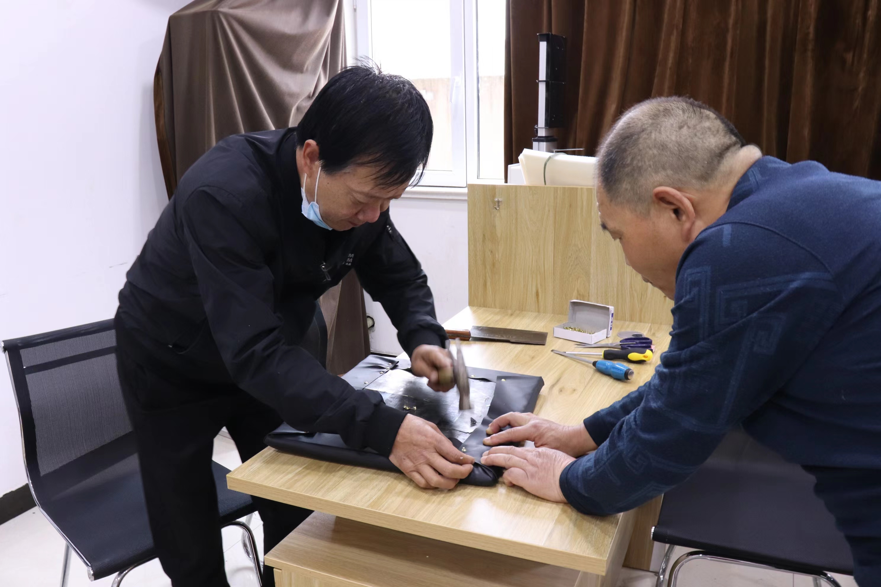 說干就干。他們買來了海綿 、面料 、釘子,憑借衛(wèi)師傅以前的木工技術(shù)和田師傅現(xiàn)有的維修技能,對破損的椅子進(jìn)行了集中維修。叮叮當(dāng)當(dāng)……敲敲打打,手腳并用,不亦樂乎……
