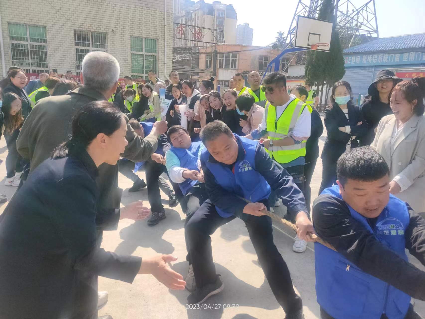 為了慶!拔逡弧眹H勞動節(jié),營造良好的節(jié)日氛圍,4月27日上午,泰森社區(qū)駐地單位慶五一“潔霸杯”拔河聯(lián)誼賽在泰森廣場舉行。