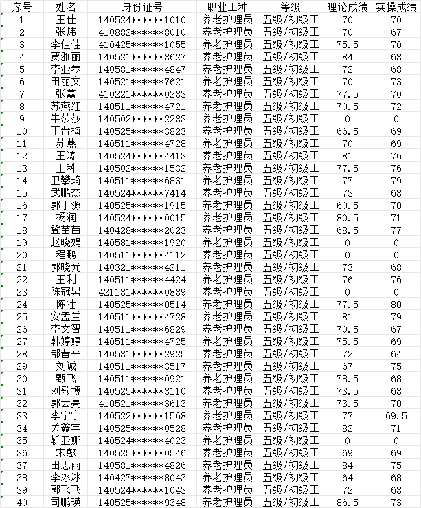 2024年7月14日第21批養(yǎng)老護理員初級認(rèn)定人員成績公示