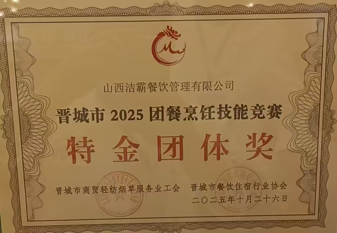 10月26日,由晉城市總工會(huì)、晉城市商務(wù)局、晉城市人力資源和社會(huì)保障局主辦,晉城市商貿(mào)輕紡煙草服務(wù)業(yè)工會(huì)委員會(huì)、晉城市餐飲住宿行業(yè)協(xié)會(huì)承辦的“情系職工 美好食光”晉城市2025團(tuán)餐烹飪技能競賽在高都大酒店圓滿落幕,山西潔霸餐飲管理有限公司斬獲“特金團(tuán)體獎(jiǎng)”。